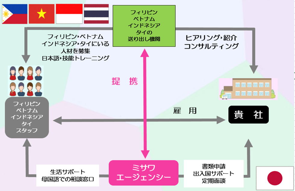 | 「特定技能」外国人スタッフのご質問・ご相談は ミサワエージェンシーへお気軽にお問い合わせください |